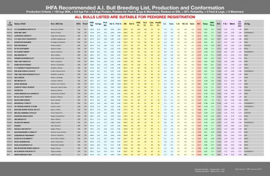 IHFA Recommended Bull Breeding List – Production & Conformation