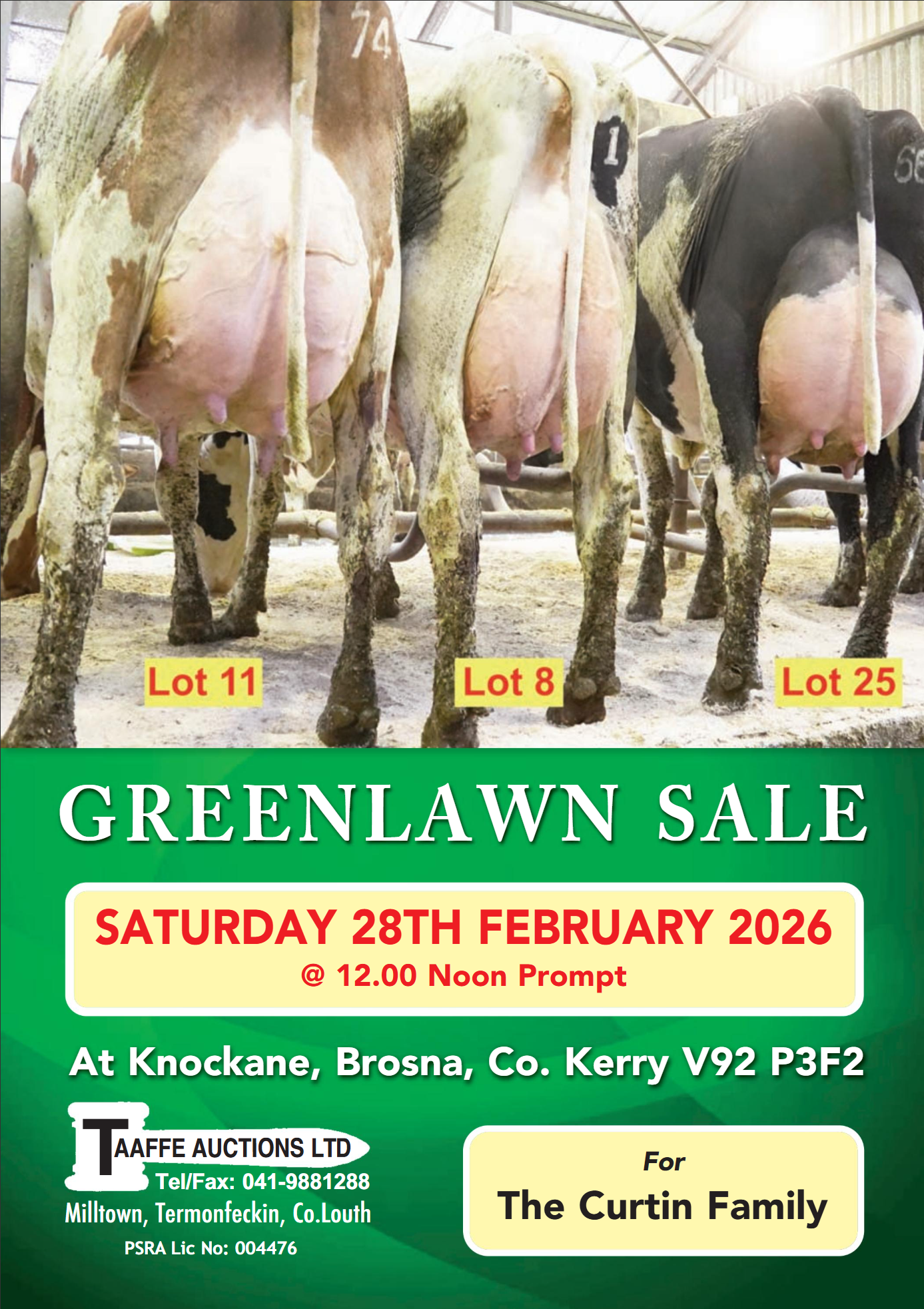 The Greenlawn Sale will take place on farm, at Knockane, Brosna, Co. Kerry on the 28th of February for the Curtin Family.