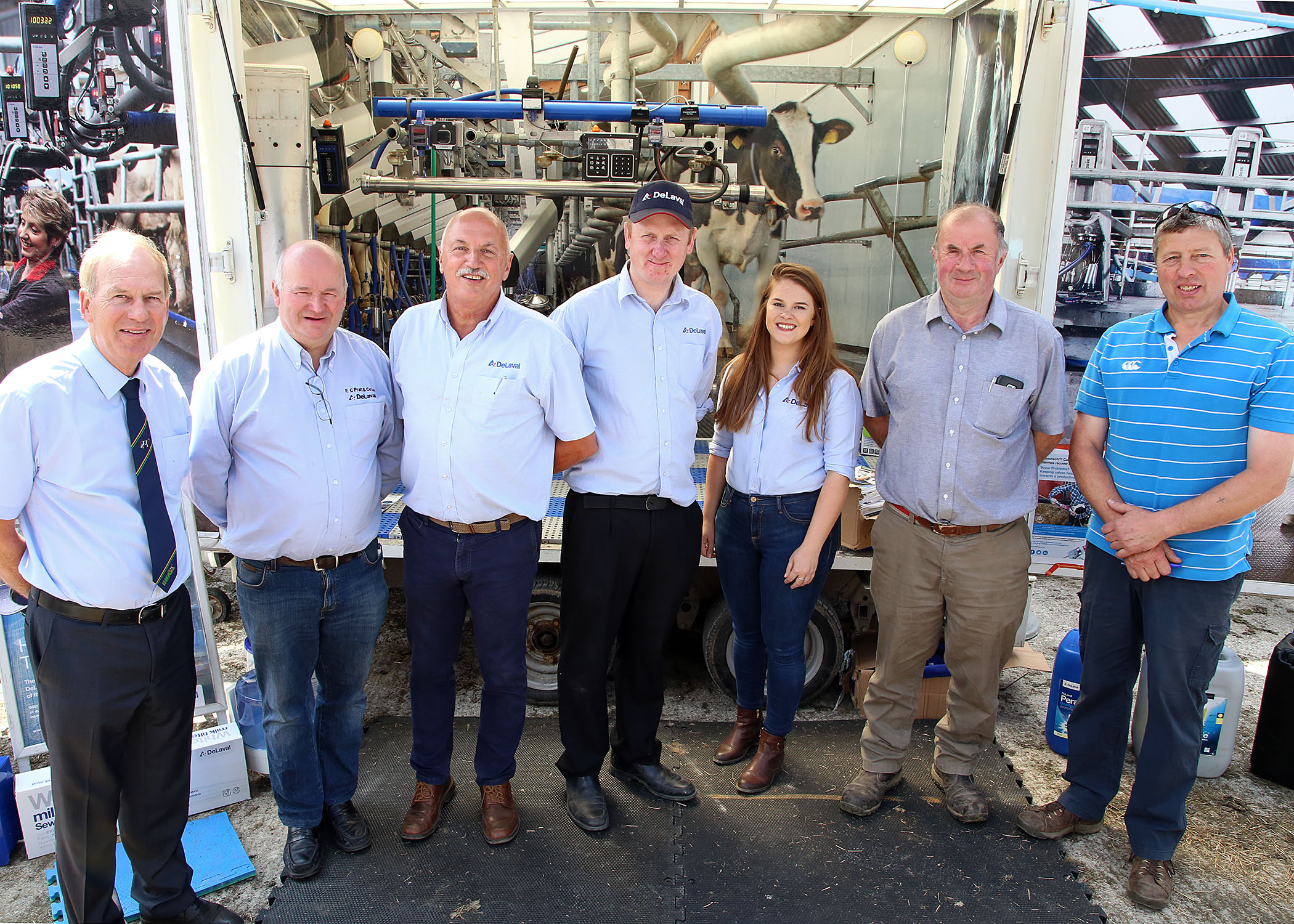 Charles Gallagher, IHFA CE with Tom Murphy, Swiftsheath Herd, Judge, Amy Coyle, Delaval (sponsor), Aileen Murphy on behalf of John C Murphy, George Moore, Delaval and Martin Crowe, Chairperson of the Irish Pure Friesian Club.