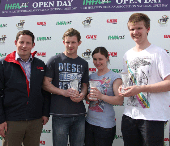 Pat Tennison, Gain Feeds (sponsor) with Thomas Neville, Ann Neville and Owen Laffan of the Limerick Clare club 18 – 30 Stockjudging section